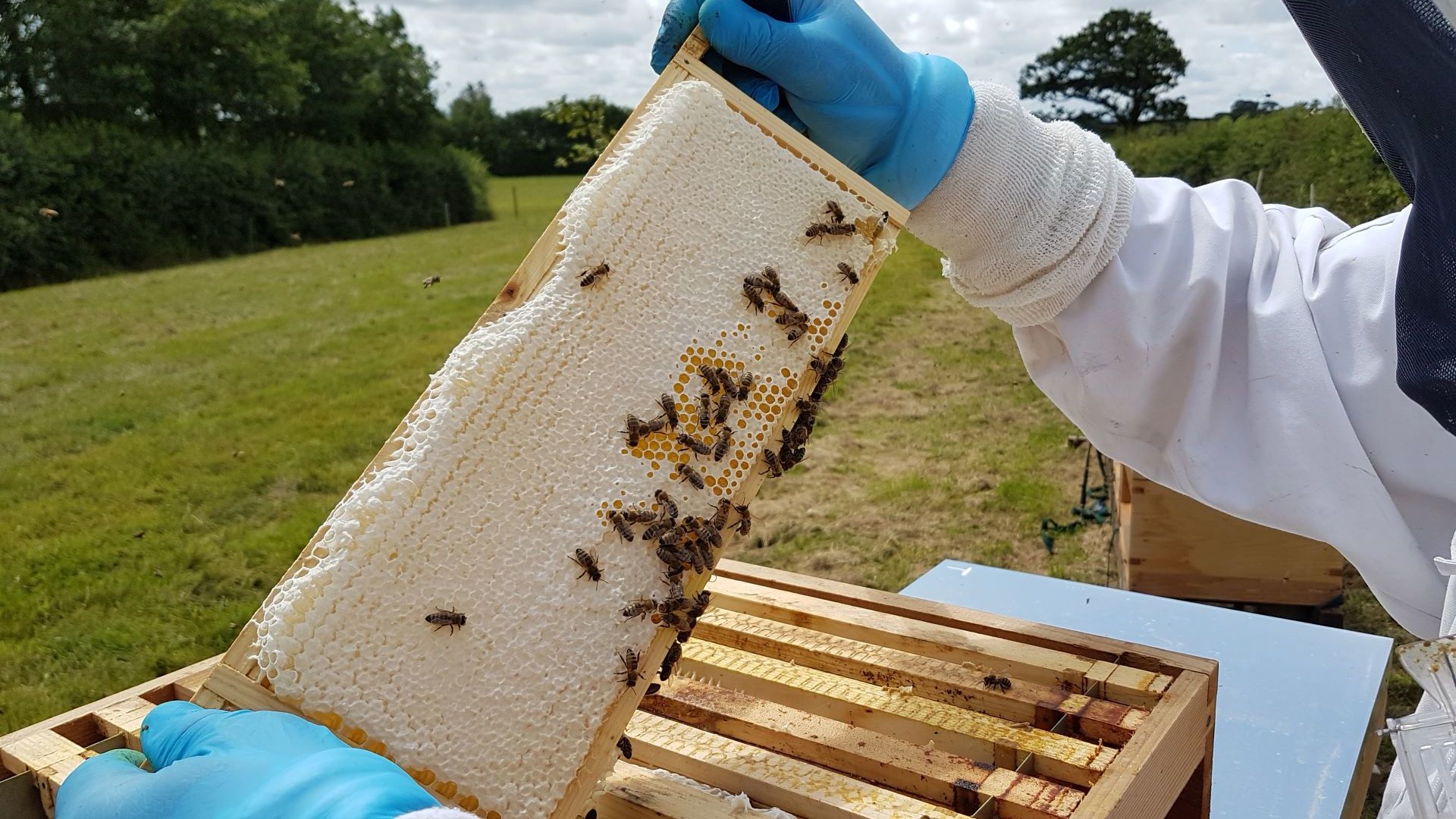 Honey supers are placed above the brood chamber, so that the bees can store excess nectar that is not being used to rear the brood, feed the queen or utilised to produce wax. They are gradually filled with nectar, which is then turned into honey by a process of evaporation. Finally the bees cap each individual hexagonal honey cell with a thin layer of wax, which makes a perfect seal to keep it fresh until needed.